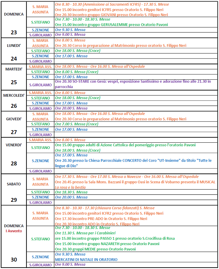 Calendario dal 23 al 30 novembre – Parrocchie di Gussago